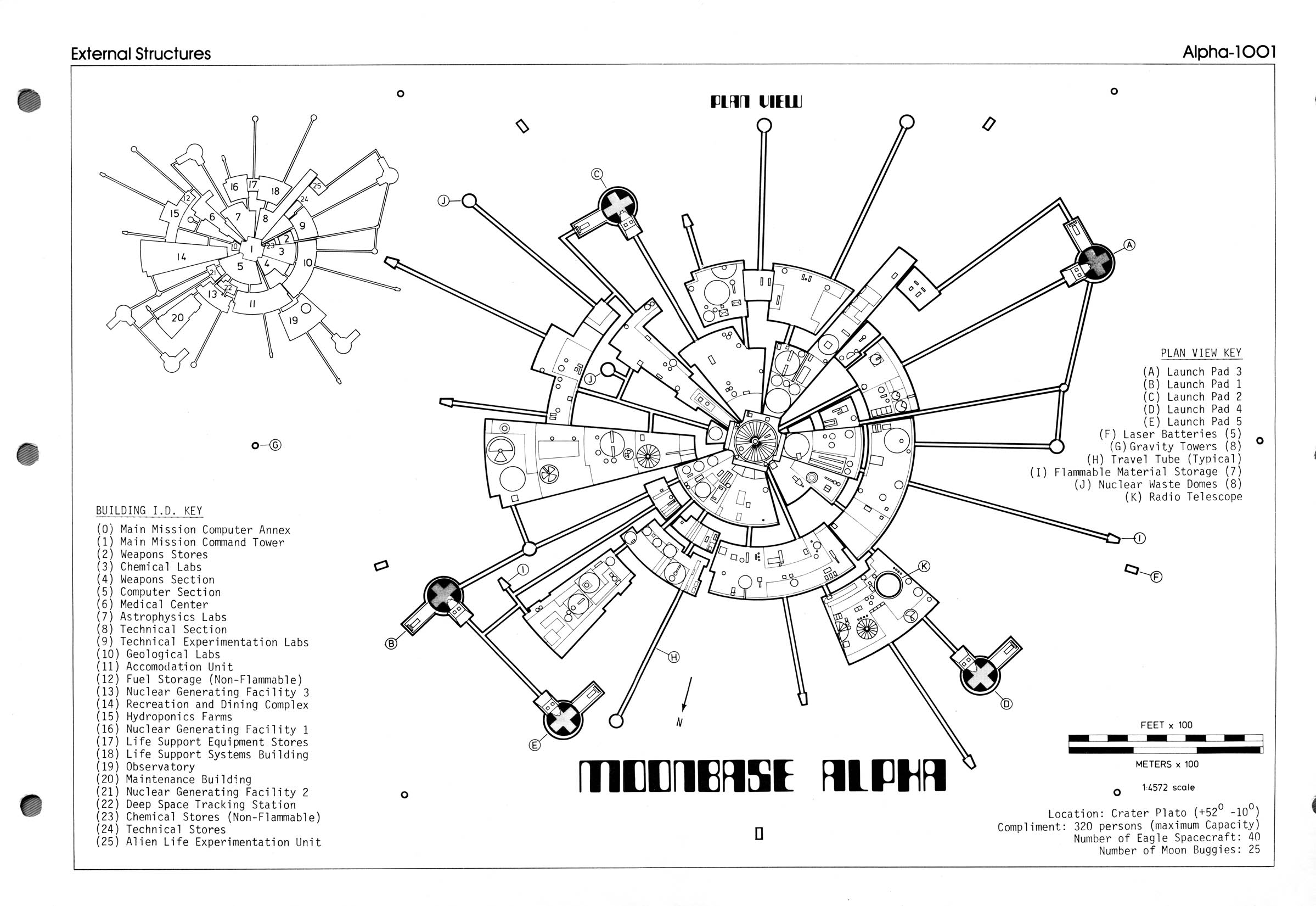 Speaking of Space: 1999, in the 5-6pm episode from season 4 of 24, the logo of fictional tech firm IDS Systems incorporates a plan view of Moonbase Alpha: