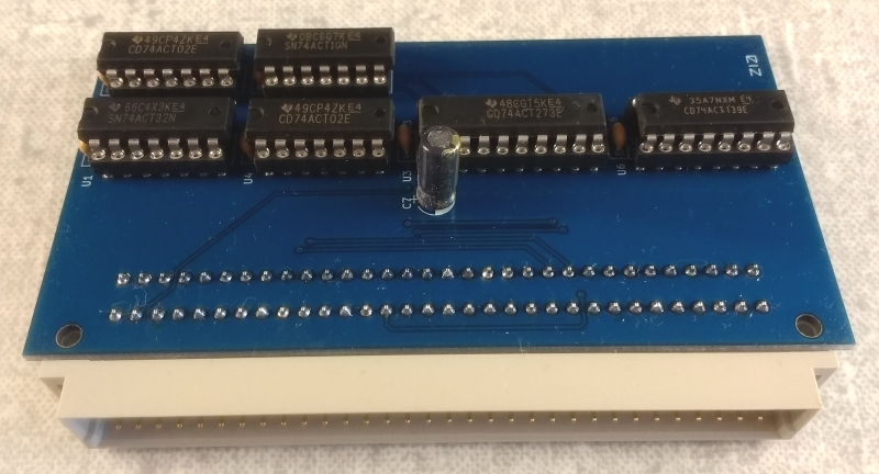 The logic board controls the mapping of memory addresses to physical memory chips. It includes an 8-bit latch which can be written to by the CPU, to enable or disable ROM and VRAM and select a ROM bank.
