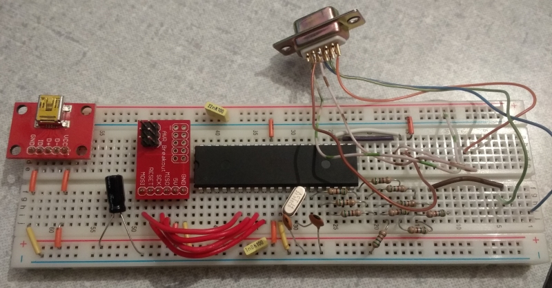 I already had various AVR microcontrollers kicking around, so that seemed like a promising avenue to explore. I looked up the VGA timings, and immersed myself sufficiently in AVR datasheets to learn enough of its assembly language to be useful. My implementation would be my own, though I did end up finding and copying Brad's interrupt latency fix.