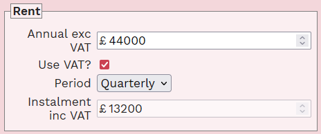 Calculated field values are possible, for example the computed rent instalment shown below (right).