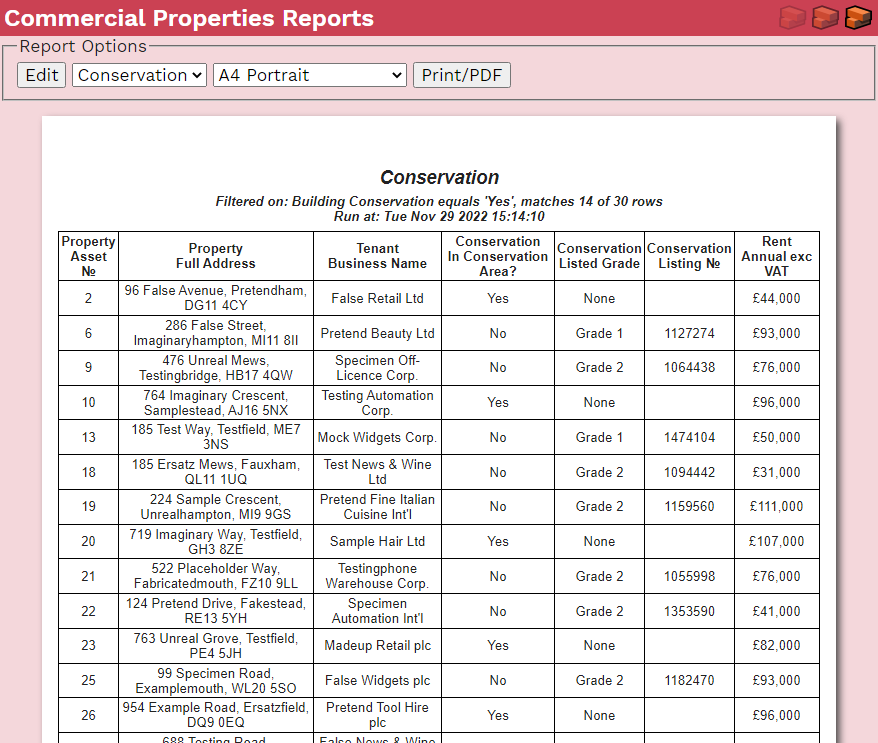 This is a web-based card-index-style database — plus a few bells and whistles — for storing information about a single type of asset, originally real-estate properties in a management company's commercial portfolio.